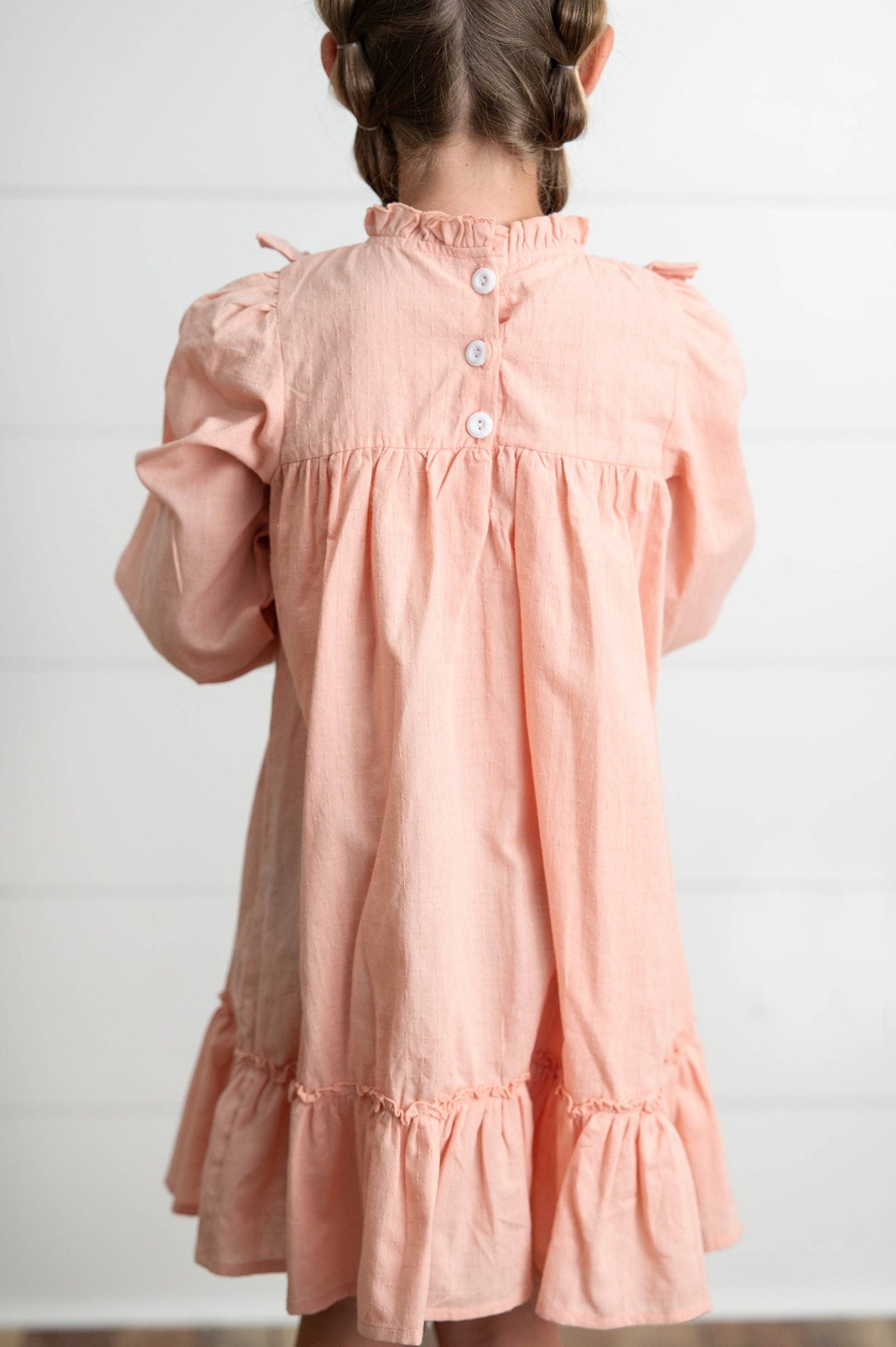 Wren & James - Girls Annie Blush Colored Ruffle Long Sleeve Fall Dress
